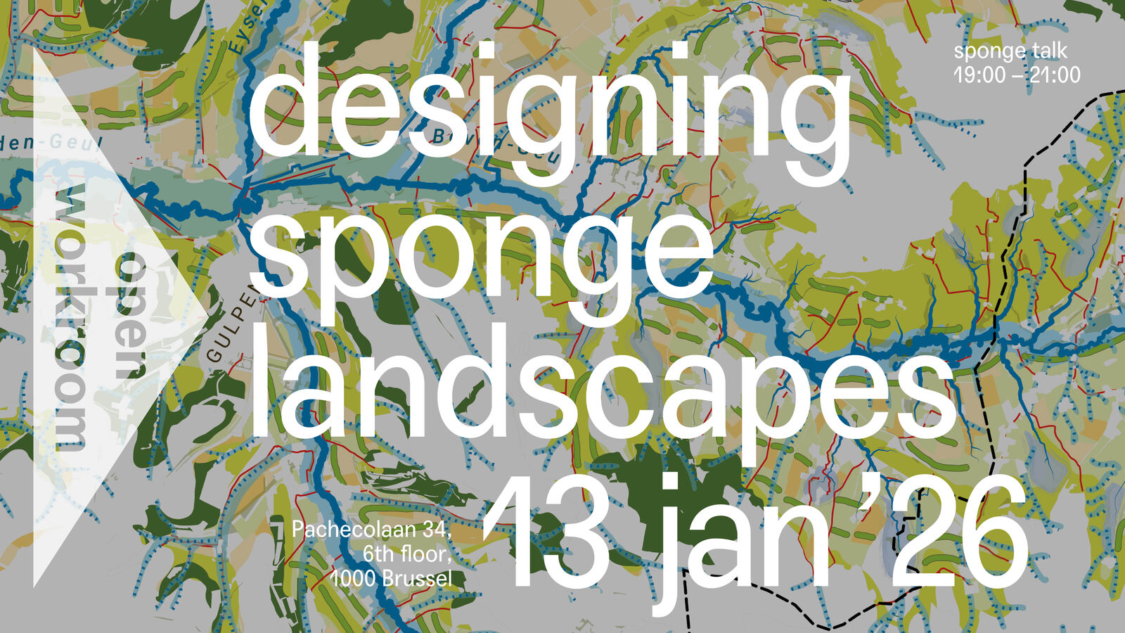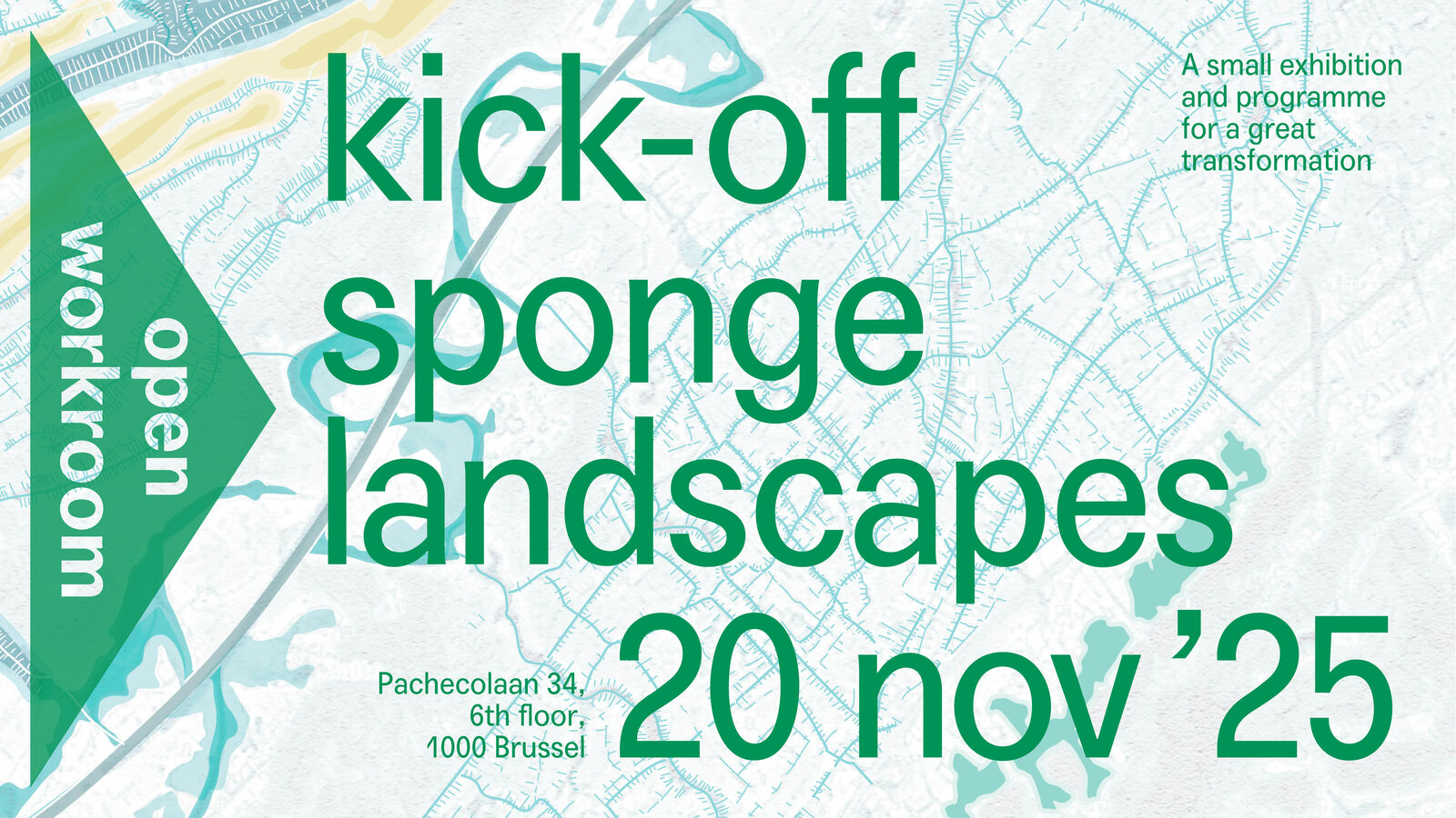 Tous et tous bienvenus à fêter l’ouverture de l’open workroom SPONGE LANDSCAPES et à lancer notre plongée collective de quatre mois dans le paysage éponge. Avant même de vous emmener en visite guidée à travers l’exposition – verre festif à la main – on active immédiatement le "work” dans “open workroom”. Le Sponge Summit aura lieu pendant la journée (sur invitation), une session de travail intensive visant à faire l’état des lieux de la pratique Européenne autour des paysages éponges à partir d’exemples venant de la Flandres, la Pologne, les Pays-Bas et la Grèce. Les réflexions qui émergeront pendant la journée alimenteront une conversation avec Veronica Manfredi (Director for Zero Pollution, Water Resilience & Green Urban Transition à la Commission Européenne) lors de la soirée d'ouverture, accompagnée de la présentation du programme complet. Ce faisant, le ton est donné pour les mois à venir : que voulons-nous explorer au sein de l’open workroom afin d'accélérer l'évolution d'une mission conceptuelle sur les paysages éponge vers une pratique de mise en œuvre ?