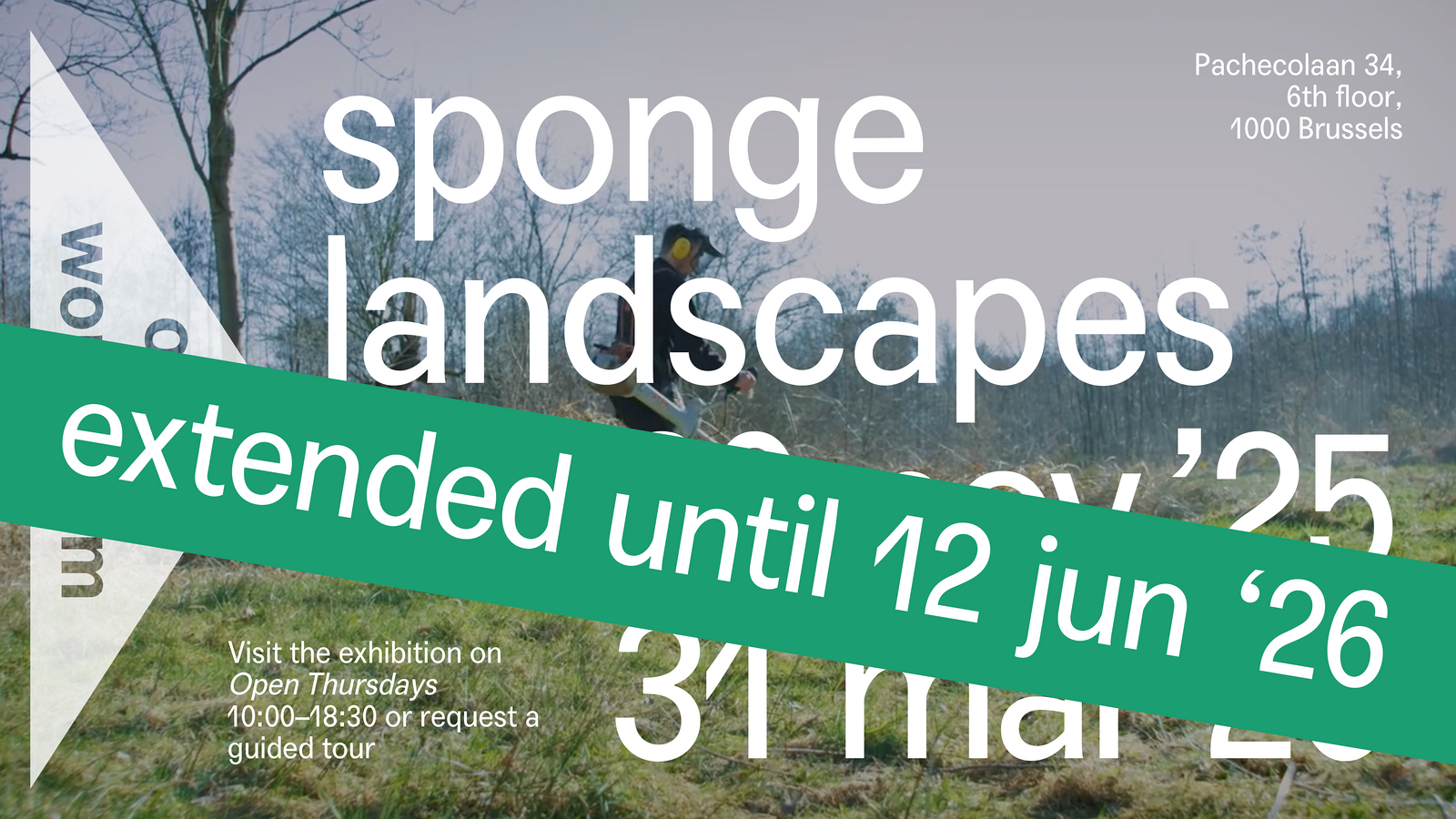 De open workroom SPONGE LANDSCAPES – een tandem van een tentoonstelling en publieksprogramma – maakt de staat op van een opkomende praktijk. De open workroom bouwt voort op het levendige en veelstemmige materiaal uit onze Call for Projects and Objects. De inzendingen komen uit alle hoeken van Europa – van vlak bij ons in Brussel tot aan de uiterste grenzen van het continent – en zijn ingezonden door een brede waaier aan profielen: regionale coördinatoren, landschapsontwerpers, onderzoekers, natuurorganisaties, boeren en landbouworganisaties, vrijwilligers en beleidsvernieuwers... In de open workroom leren we van hun ervaringen, en werken we zo aan een gesterkte praktijkgemeenschap. Met de tentoonstelling als setting voor een programma van besloten werksessies en publieke debatten, brengt de open workroom iedereen samen die wil bijdragen aan de realisatie van sponslandschappen!