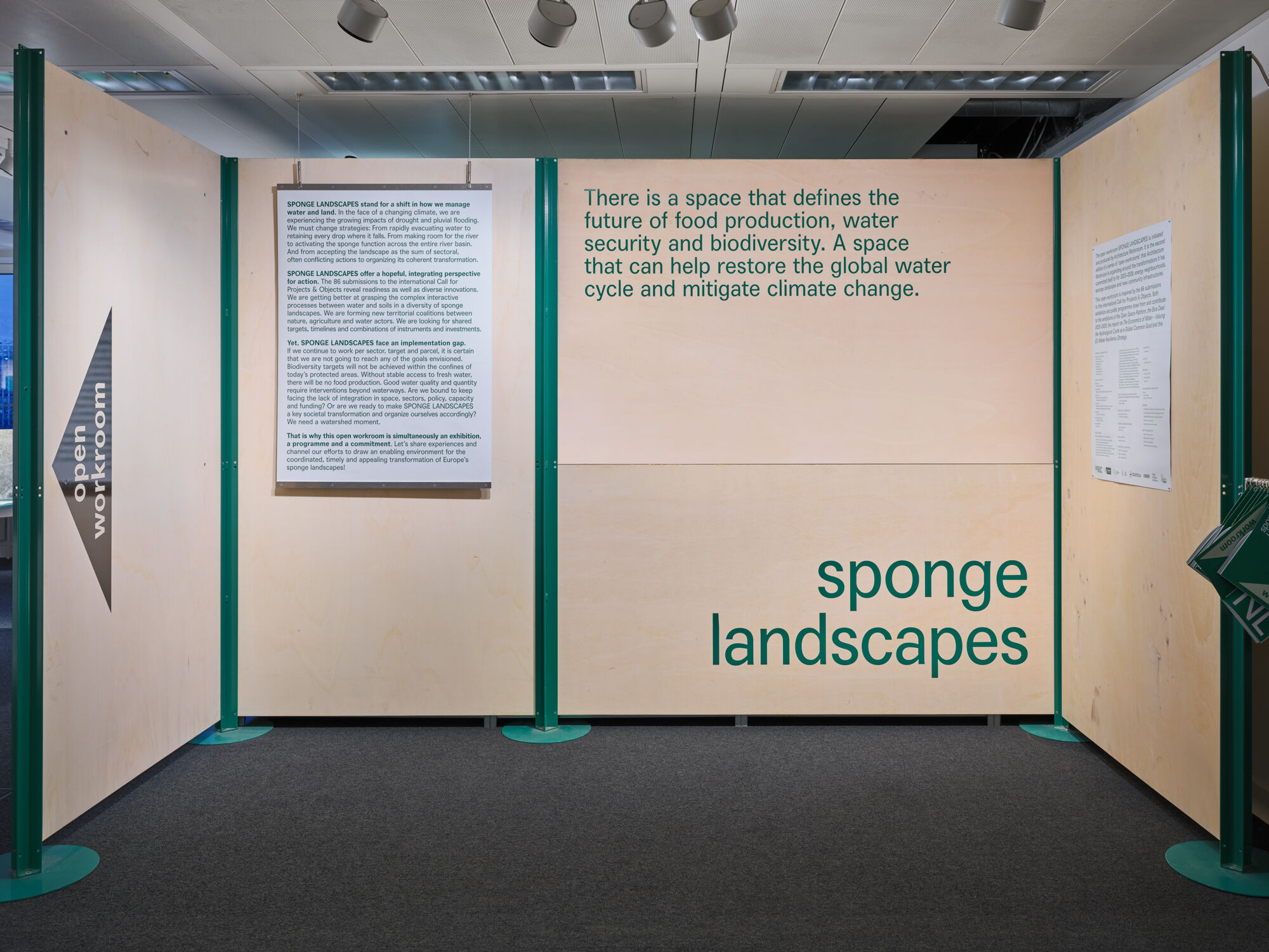 De open workroom SPONGE LANDSCAPES – een tandem van een tentoonstelling en publieksprogramma – maakt de staat op van een opkomende praktijk. De open workroom bouwt voort op het levendige en veelstemmige materiaal uit onze Call for Projects and Objects. De inzendingen komen uit alle hoeken van Europa – van vlak bij ons in Brussel tot aan de uiterste grenzen van het continent – en zijn ingezonden door een brede waaier aan profielen: regionale coördinatoren, landschapsontwerpers, onderzoekers, natuurorganisaties, boeren en landbouworganisaties, vrijwilligers en beleidsvernieuwers... In de open workroom leren we van hun ervaring, en bouwen erop verder in vijf fronten: